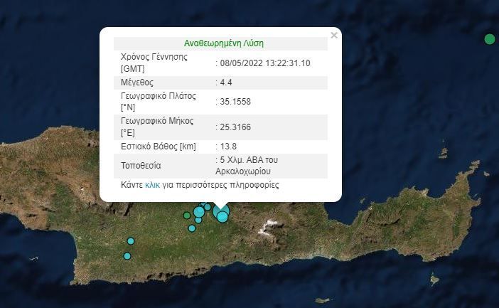Σεισμός στην Κρήτη, και συγκεκριμένα στο Αρκαλοχώρι, έγινε νωρίς το απόγευμα της Κυριακής.